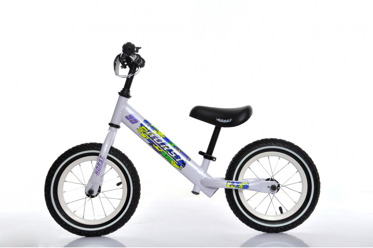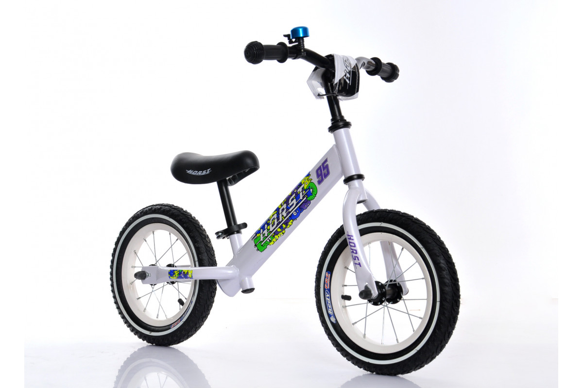 Беговел 00-170676 рама сталь, надувные колеса 12″ герм.подш. регул. руль/седло белый HORST95